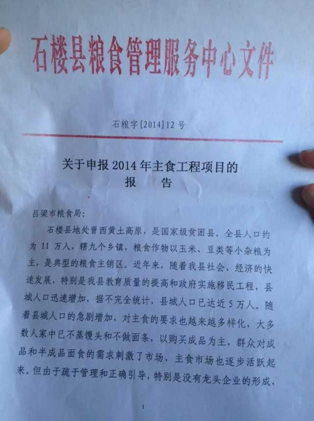 祝賀,山西石樓縣政府為了給廣大群眾提供放心,良好的主食產品,重點在全縣挑選培植主食龍頭企業,一品鮮山西呂粱石樓店被石樓縣糧食局認真調查了解,考察論證,附和條件,終上報呂梁市糧食局,被確定為2014年度石樓縣主食產業化工程提升改造項目承載企業。
